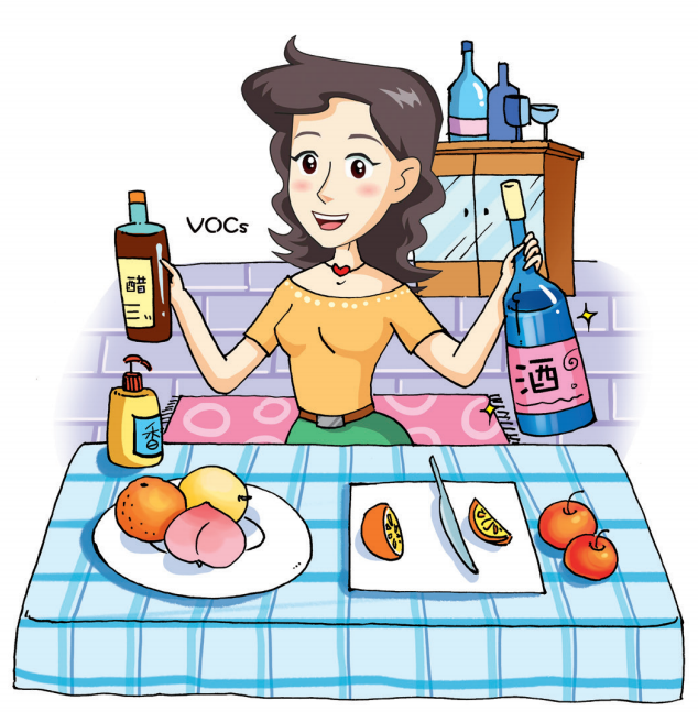 日常食用的食醋中包含醋酸(學名乙酸),可揮發(fā)進入空氣,屬于含氧的VOCs(簡稱OVOCs)。酒類飲品都含有酒精(學名乙醇),屬于揮發(fā)性較強的醇類,當然也屬于VOCs,是一種OVOCs。香水中含有各種各樣的植物提煉或化學合成的芳香性化合物、精油類物質(zhì)等,其中有許多屬于VOCs,例如芳香醛、芳香酯等。此外香水中的助溶劑通常是乙醇等VOCs。一些水果(例如檸檬、橙子等)和日用清洗劑中含有苧烯,也是具有香味的VOCs。家庭裝修和家具等釋放的室內(nèi)空氣污染物,例如甲醛、苯、甲苯等都屬于VOCs。